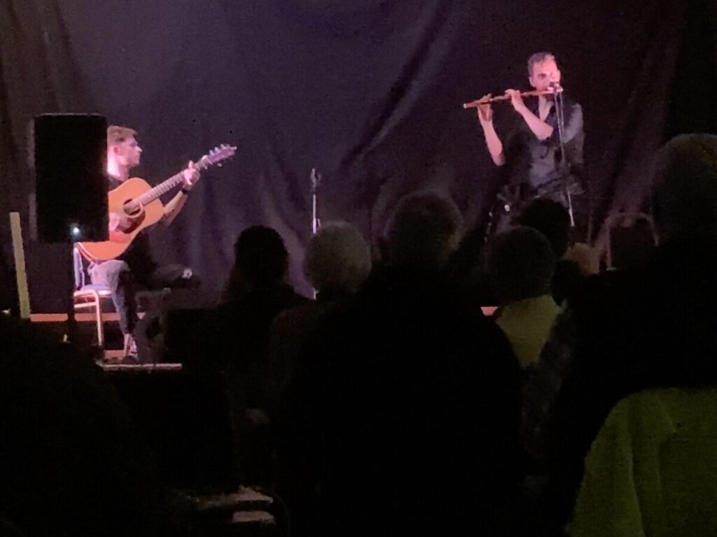The main concert lived up to its promise, with an energetic and vibrant performance from Calum, Luc and Sophie, three performers at the top of their game, complementing and playing off each other throughout. The uilleann pipes were crisp and clear, the flute rich and sonorous as Calum presented new material alongside more familiar tunes from earlier recordings.