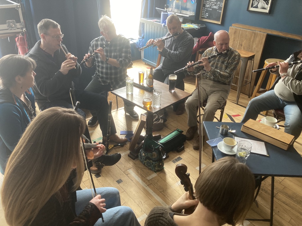 We tried a new venue for the Sunday farewell session, having outgrown the Sandy Bells space, which struggled to accommodate the numbers last year. Thanks to Marie-Elaine Maguire for suggesting Leith Depot, which is on main public transport routes and has good food and drink. The atmosphere was relaxed and the tunes mellow.