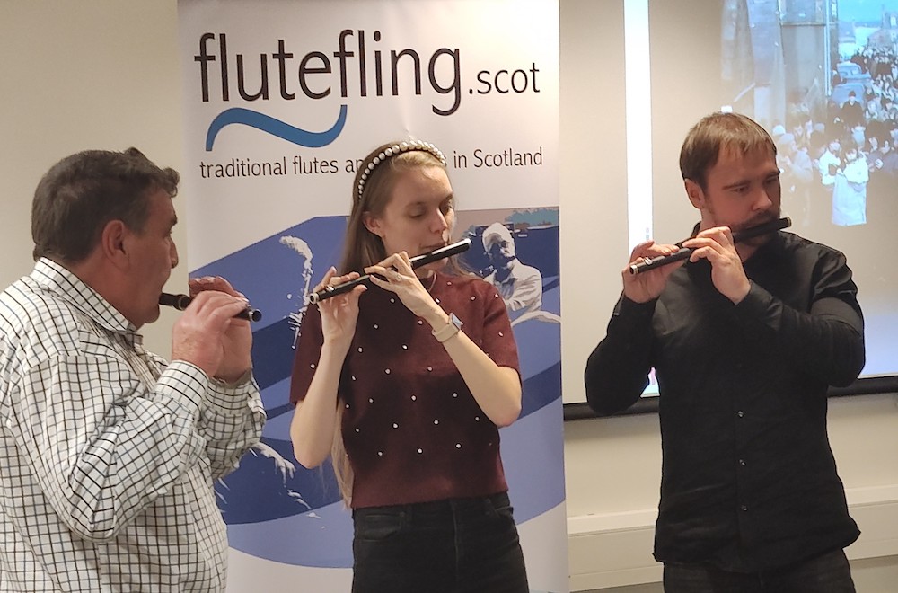 Some of the successful elements of the Edinburgh FluteFling weekends of recent times were introduced as we opened with a new Friday night concert. The workshops took place at the Macrobert Building, generously supported by The Elphinstone Institute and Scottish Culture and Traditions (SC&T). Our thanks to Lewis Brown for his hospitality at the The Blue Lamp for the Friday concert and both sets of sessions; to Kirsty Campbell for being our Elphinstone Rep; to Lynn Gowans for delivery of the SC&T tea and coffee facilities and various goodies, including scones and rowies. We look forward to the opportunity of working with them again next year.