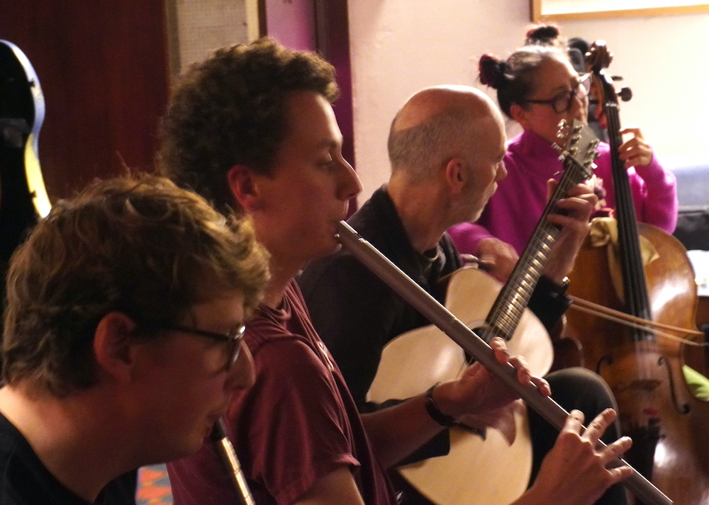 The encore saw Kirsten and Maitiú return to the stage to join Jordan and Hamish for a rousing set of Irish tunes that saw some delicious interplay between the flutes. Maitiú at one point played what Kirsten referred to as a “deconstructed single reed concertina”, which was revealed to be a jaw harp (aka Jew’s harp, or trump in Scots).