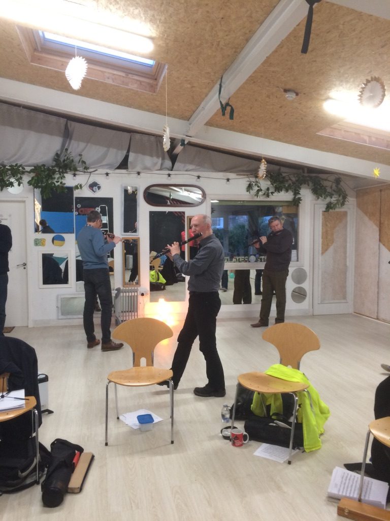 Returning to teaching after a gap of 2 years was also a personal challenge. There was lots of talk and questions and in the back of my mind, I could hear Hammy Hamilton’s comment from Cruinniú na Bhfliúit, that he was always happy to hear talk coming from a room because it meant that people were discussing questions rather than simply learning tunes. As David Fednandez said, he was just happy to be back with others again playing the flute.